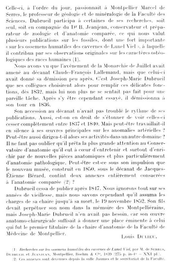 d’anatomie à Montpellier, Dr Louis Dulieu, revue d’histoire des