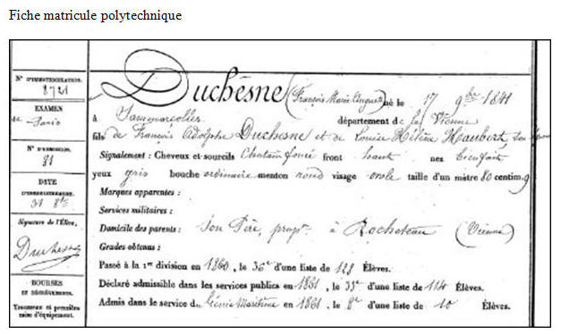 Au 1er janvier 1881, en résidence à ROCHEFORT, inscrit au tableau