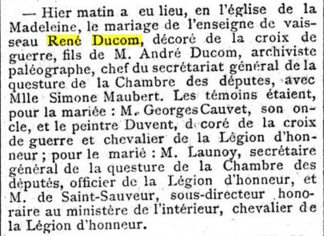 DUCOM, Lieutenant de Vaisseau (1892-1989)