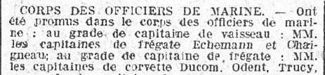 sur le cuirassé "VÉRITÉ", 2ème Escadre, 1ère Armée navale (Cdt