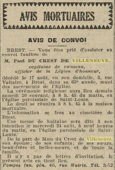 Brest, au nom de Ducrest est substitué celui de Du Crest).