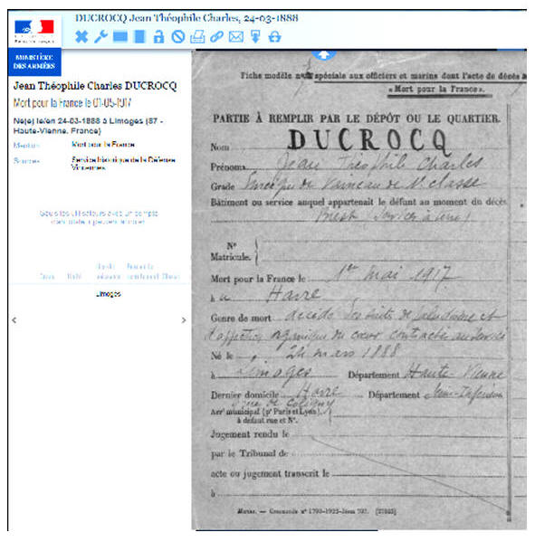 (Haute-Vienne) - Décédé le 1er mai 1917 au HAVRE (Seine-Maritime).