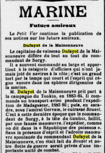 Lieutenant de vaisseau le 19 août 1877.