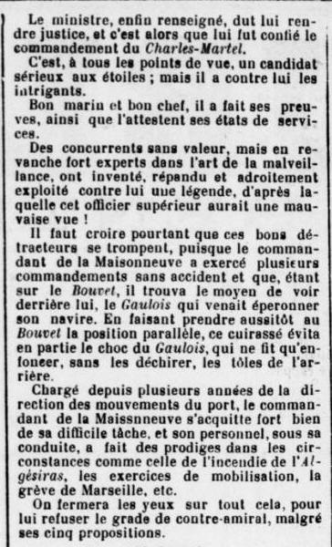 Commandant le cuirassé "BOUVET", Escadre de Méditerranée.
