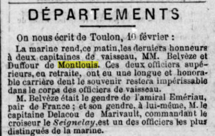 Capitaine de vaisseau le 30 juillet 1857; port TOULON.