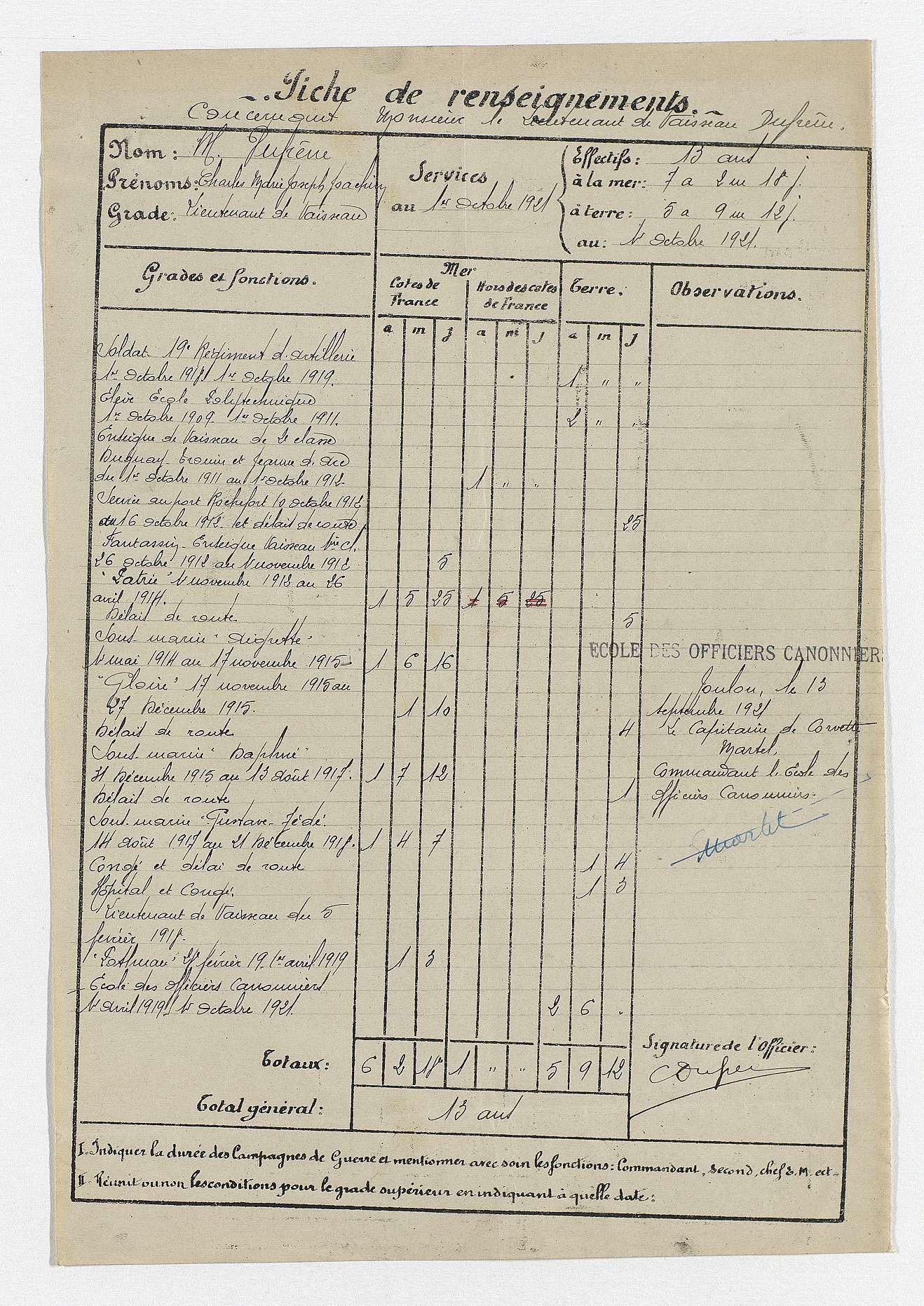 Etats de service jusqu'en 1921 / Extrait dossier Légion d'honneur