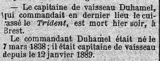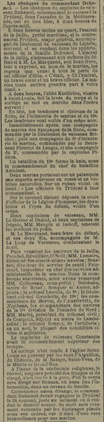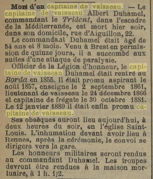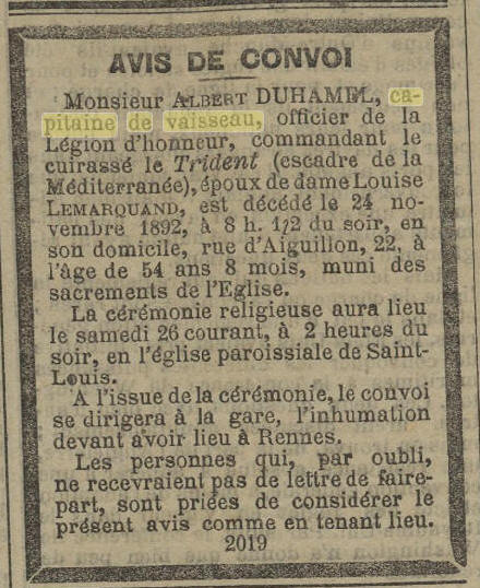 Pierre et Miquelon) - Décédé le 24 septembre 1892 à BREST (Finistère)