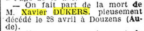 à LA CIOTAT (Bouches du Rhône) - Décédé le 28 avril 1942 à DOUZENS