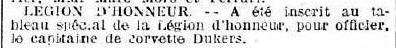 corvette, Commandant le dragueur "ANJOU", il est cité à l'ordre de