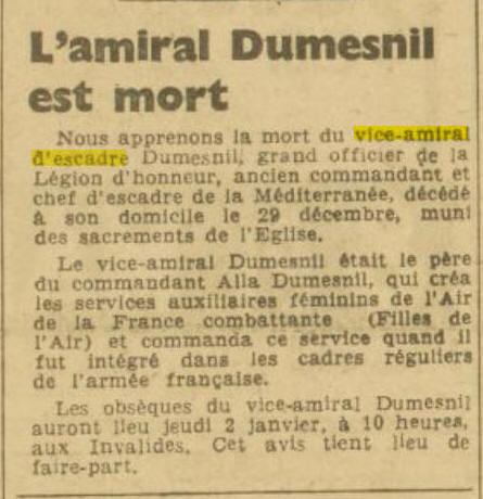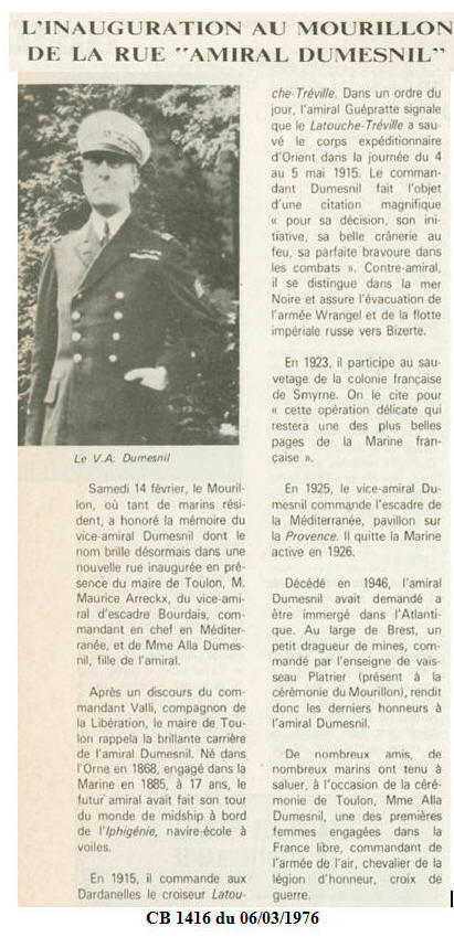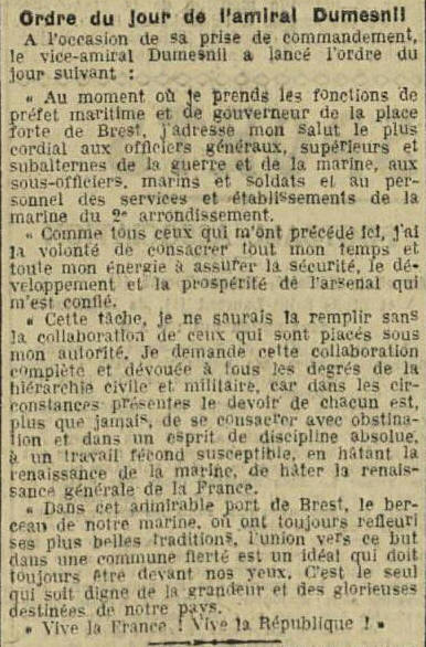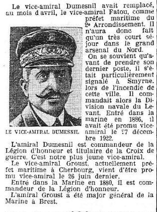 le Préfet Maritime évoque la personnalité de l’Amiral DU MESNIL …
