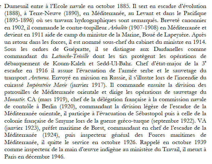adressées au VA Dumesnil au sujet de sa collaboration à l'ouvrage La