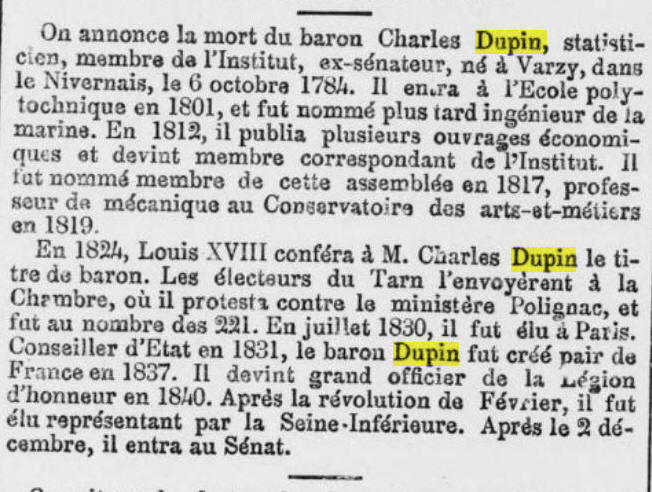 Dupin, Pierre Charles François (X 1801 ; 1784-1873).