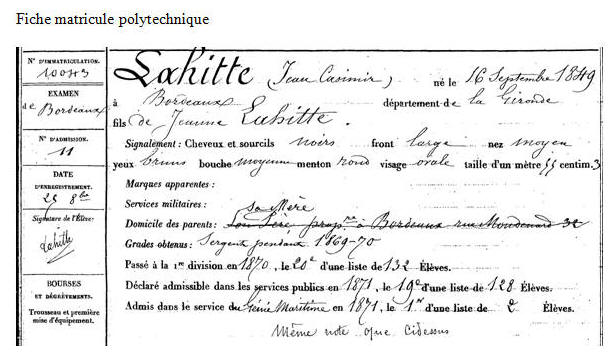 Sous-ingénieur de 3ème classe le 23 décembre 1873.
