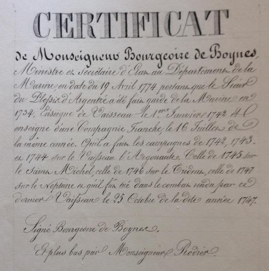 ses états de service, établi le 19 octobre 1774