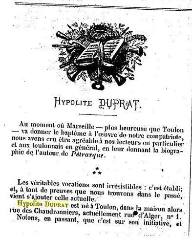 Une rue de Toulon porte son nom, donnant sur l’arrière de l’hôtel du