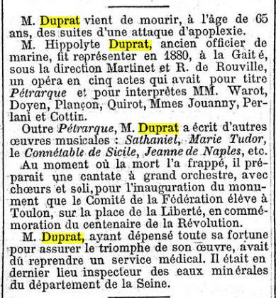 Marseille le 19 avril 1873, joué ensuite dans plusieurs villes de