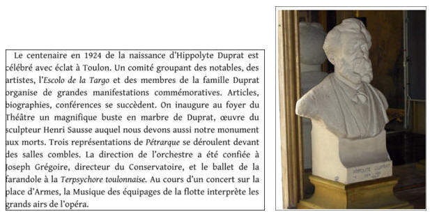 Son buste sculpté par Henri SAUSSE figure à l’Opéra de Toulon.