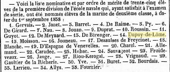 Dupuy-de-Lôme Eugène Laurent, élève de seconde classe, fils de