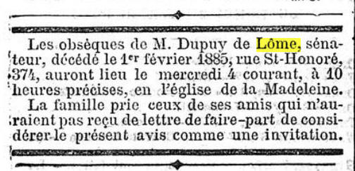 Extrait Le Gaulois / 2 février 1885