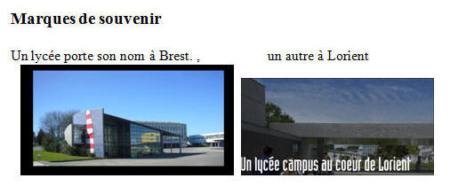 Un lycée porte son nom à Brest, un autre à Lorient.