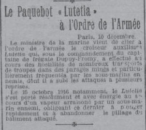 « Le croiseur auxiliaire LUTETIA : sous le commandement du Capitaine