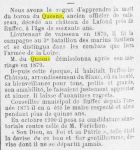 Fils de Marie Augustin Du Quesne,