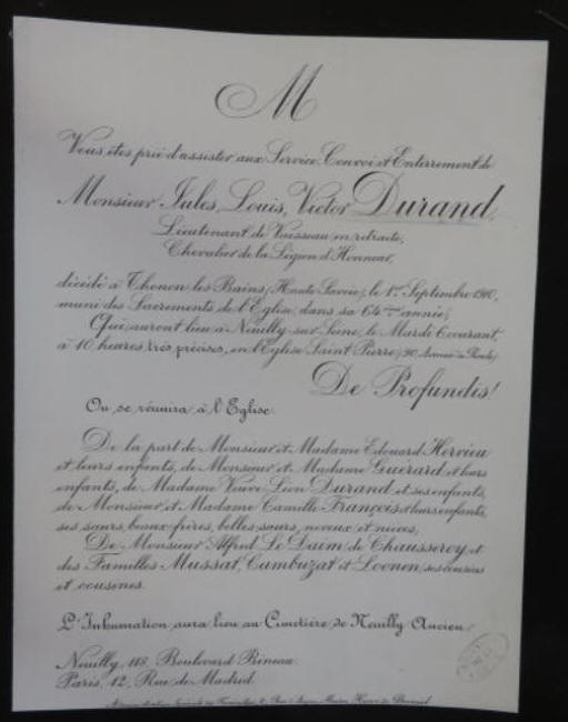 (Seine) - Décédé le 1er septembre 1910 à THONON-les-BAINS