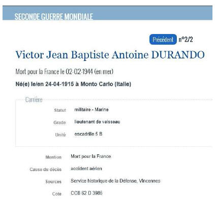 1946 (JO du 16 mai 1946), le lieutenant de vaisseau Durando a été