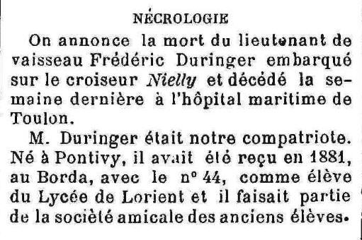 (Morbihan) - Décédé le 7 janvier 1895 à TOULON (Var)