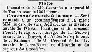 résidence à Cherbourg. En 1881, à bord du croiseur Vénus,