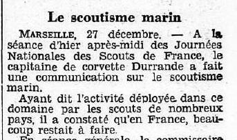 27 décembre 1936, une conférence sur le scoutisme marin, aux