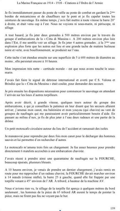 la CITTA DI MESSINA. Lorsque la FOURCHE a été torpillée, a abandonné