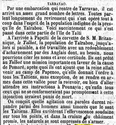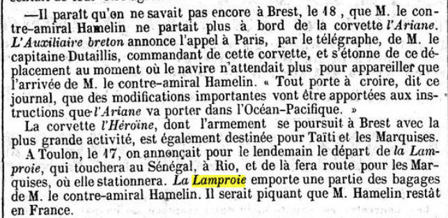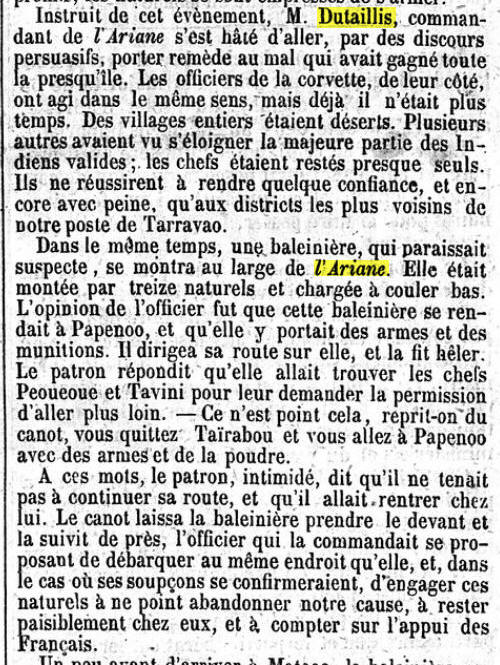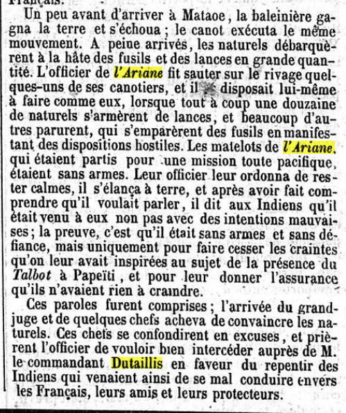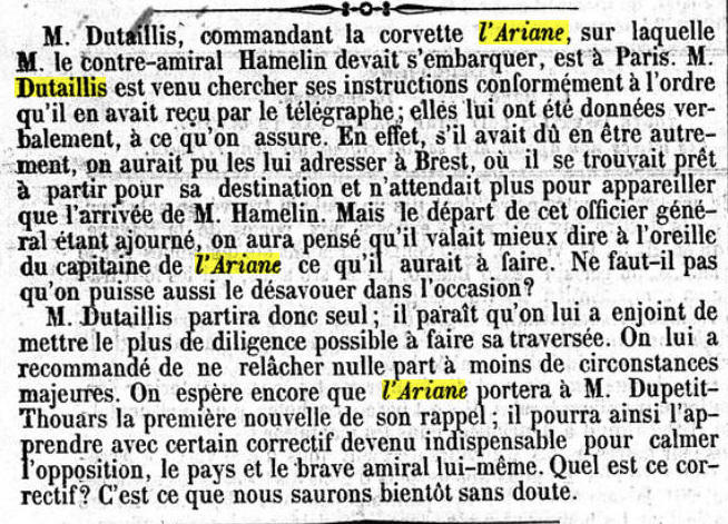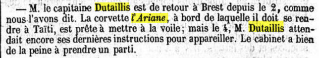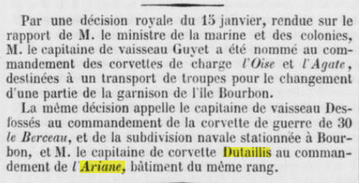 Le 1er février 1844, Commandant la corvette de 30 canons "ARIANE",