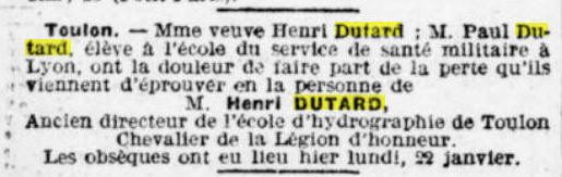 à TOULON (Var) - Décédé le 20 janvier 1923 à TOULON (Var)