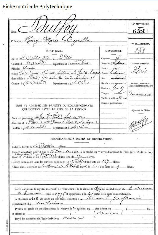 Élève de l'École polytechnique en 1900, opte pour la Marine