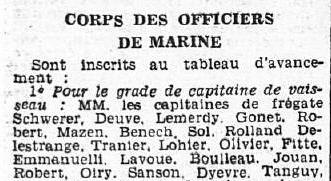 Capitaine de vaisseau en 1940. Il rentra dans le corps des