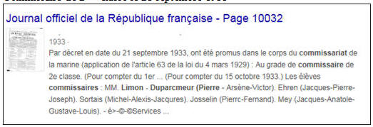 Commissaire de 2ème classe le 21 septembre 1933