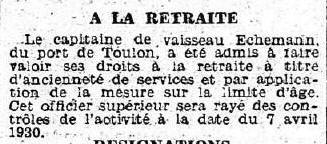 réserve le 7 avril 1930; port TOULON.