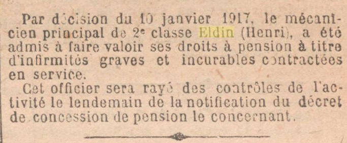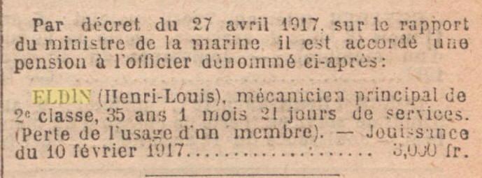 Pensionné le 10 février 1917 (perte de l'usage d'un membre).