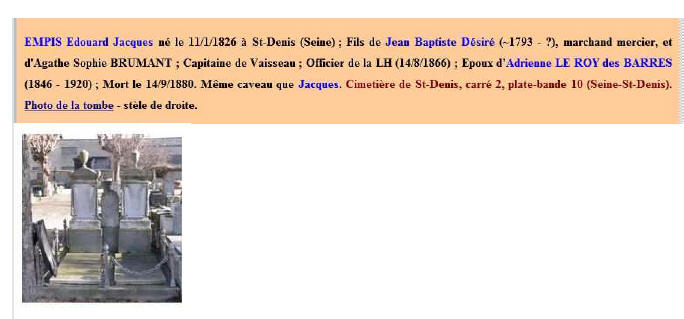 1872 à Saint Denis (Seine Saint Denis) LE ROY DES BARRES Adrienne