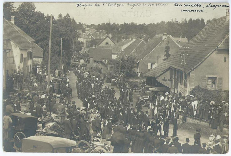 Le cortège officiel se dirige, au trot des chevaux, vers la mairie,