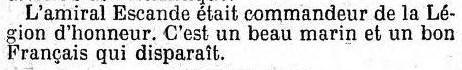 (nomination du 16 février 1883), Commandant le croiseur de 3ème