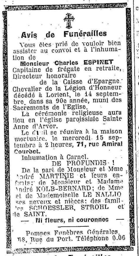 le 14 septembre 1926 à LORIENT (Morbihan)