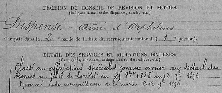 Entre dans la Marine le 20 avril 1885 (port LORIENT)