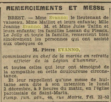 Extrait La Dépêche de Brest / 30 novembre 1935