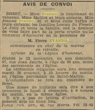 Extrait La Dépêche de Brest / 25 novembre 1935