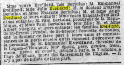 Né le 28 avril 1831 à SAINT BRIEUC (Côtes d'Armor) - Décédé le 7