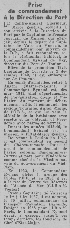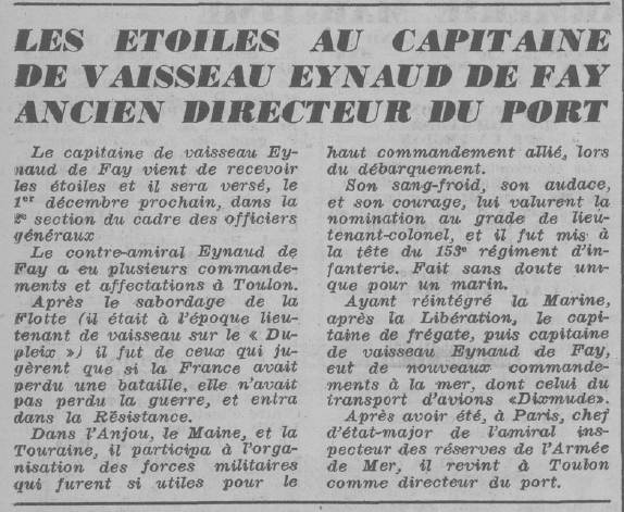 de Faÿ réintègre la Marine.