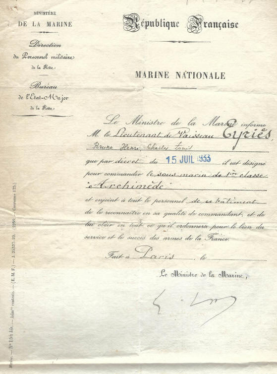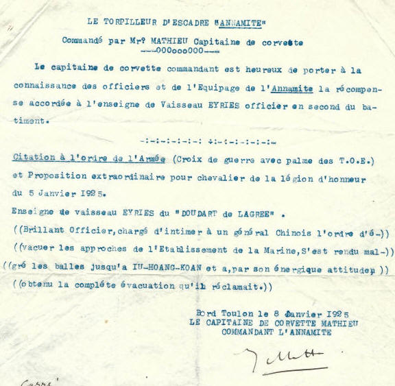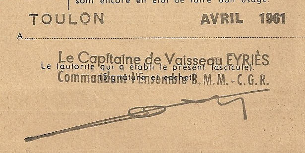 port TOULON; inscrit au tableau de concours de la Légion d'Honneur.
