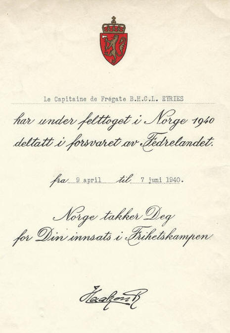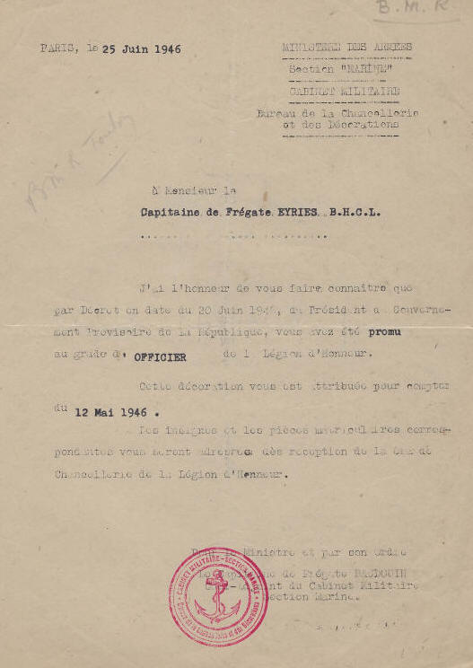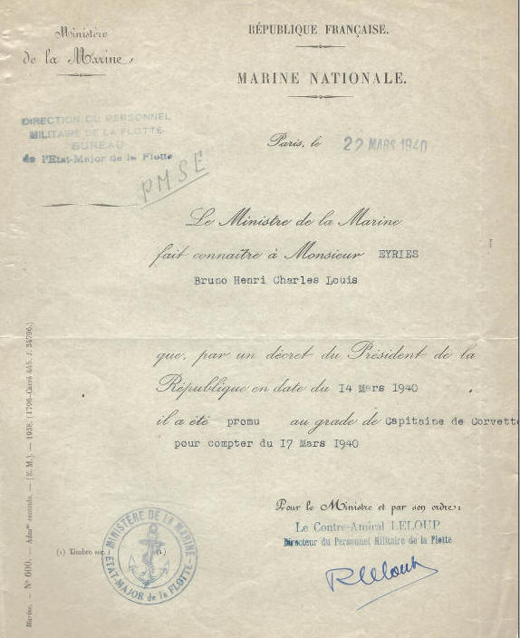 Capitaine de frégate (confirmé le 14 avril 1945)